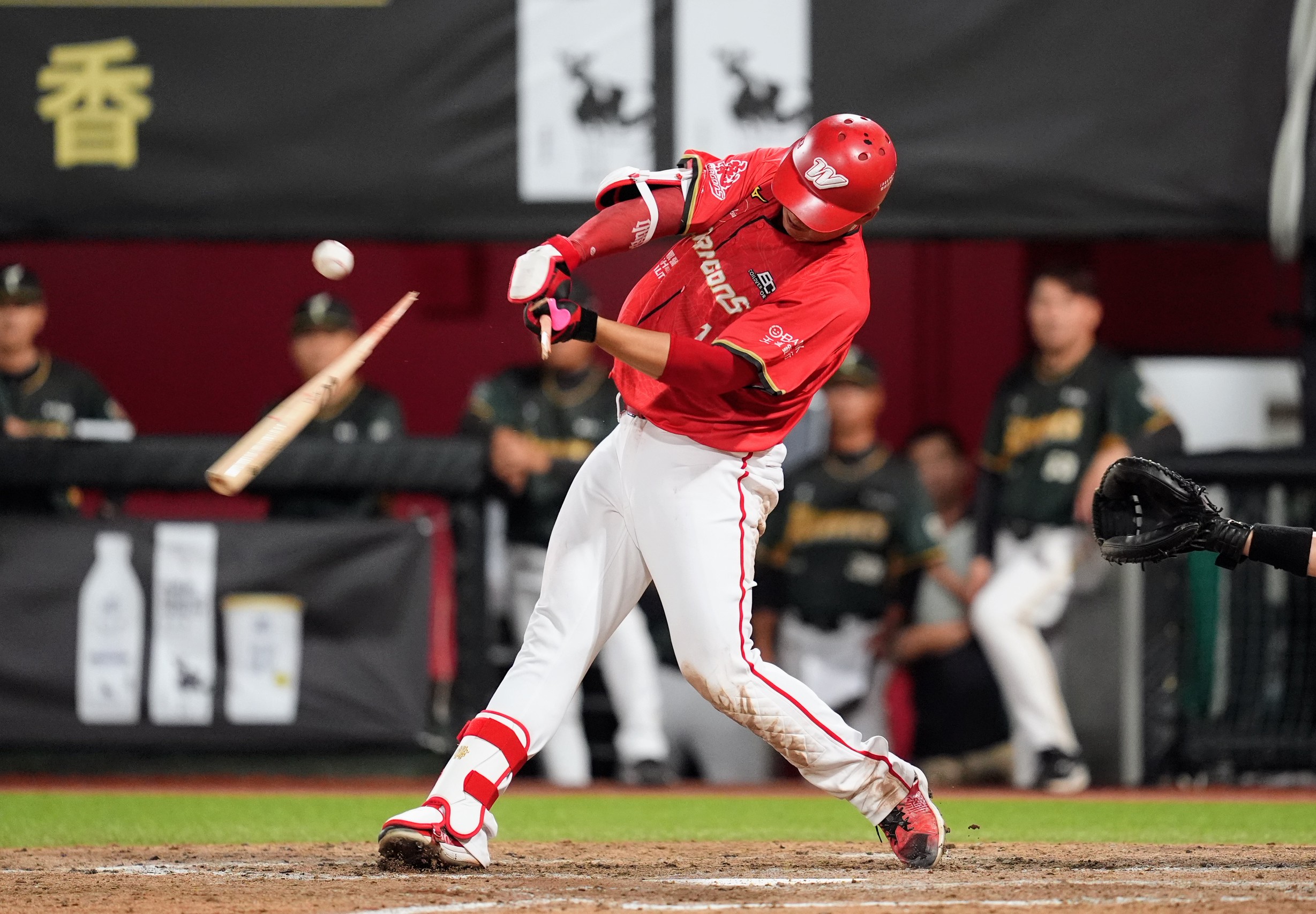 朱育賢九局下敲出斷棒再見安打。圖片來源:味全龍