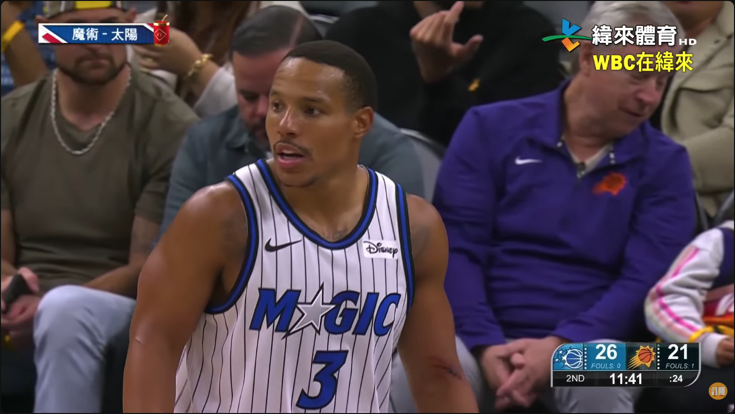 但中場前5分鐘太陽只有Grayson Allen在得分,反觀魔術這邊有Carter和Banchero輪番輸出,聯手攻下12分幫助球隊一度又將領先擴大到兩位數,不過Allen用一次大拉桿左手壓哨上籃,硬是將落後拉回到雙位數,半場打完51比43、魔術取得8分領先。