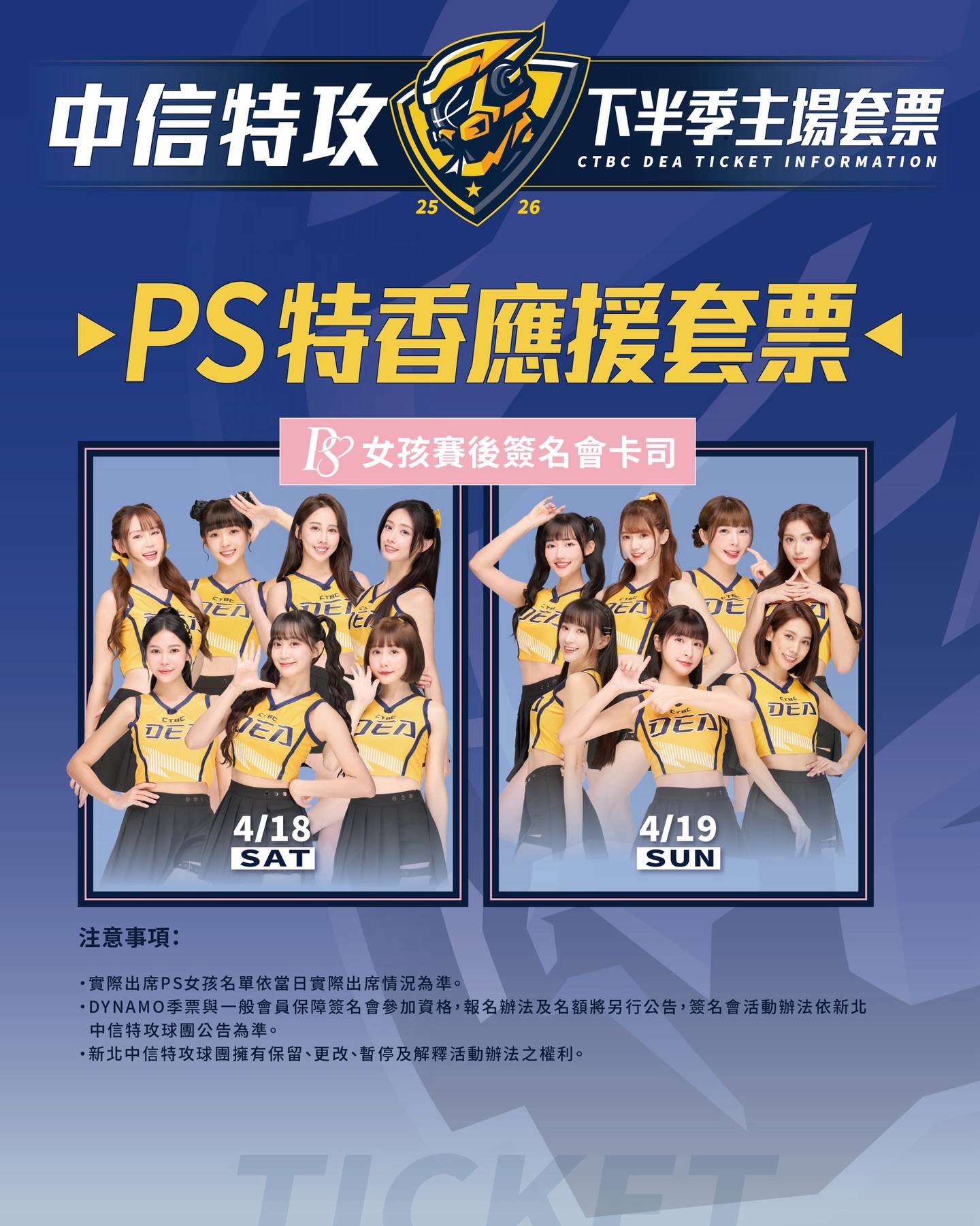 特攻下半季推出「PS特香應援套票」方案簽名會卡司。圖片來源:新北中信特攻提供