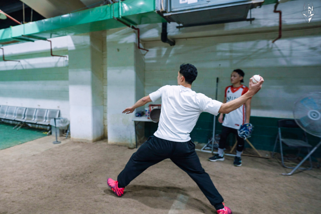 雷蒙恩體驗投球。圖片來源:臺北台新戰神提供