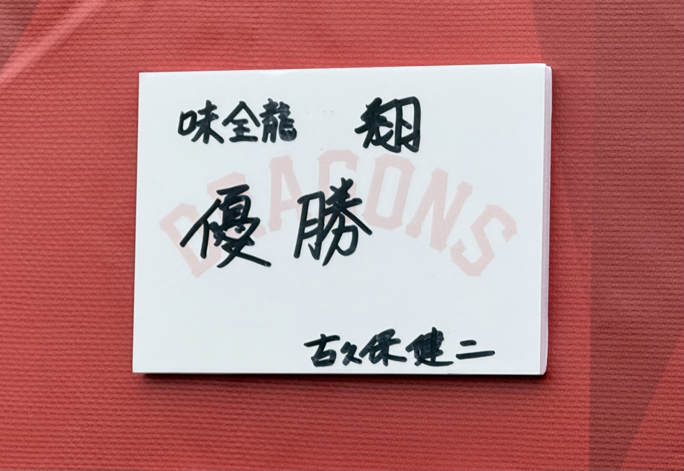 味全龍今天(18日)在斗六棒球場舉行開訓儀式,在古久保健二首度以龍隊教練團的身份亮相之前,他對新球季所寫下的心願卡搶先曝光,簡潔寫下「優勝」二字期待新賽季以全新身份幫助龍隊拿下總冠軍。至於對巡迴統籌教練新職務的內容,他也透露想法。